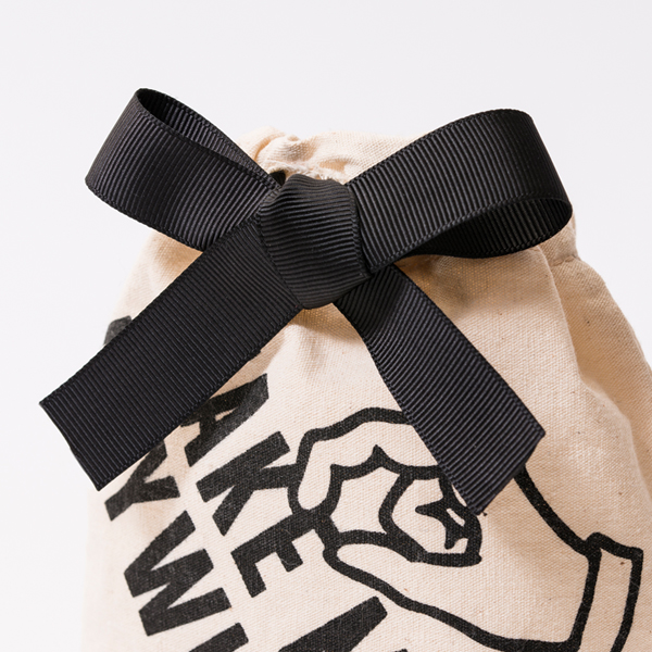 口の部分をしぼり巾着のようにできるリボン。